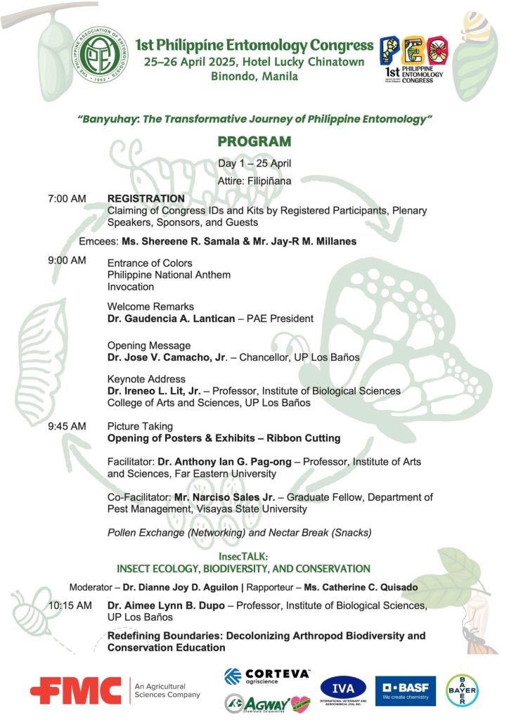 With the theme “Banyuhay: The Transformative Journey of Philippine Entomology,” the Congress celebrates the concept of “banyuhay”—the Filipino word for “metamorphosis”. As a journey and a transformative process, it aspires to rekindle the nation’s focus on the science and art of entomology, reflecting on its history, milestones, and the profound impact it has had—and can continue to have—in addressing the challenges of the 21st century.