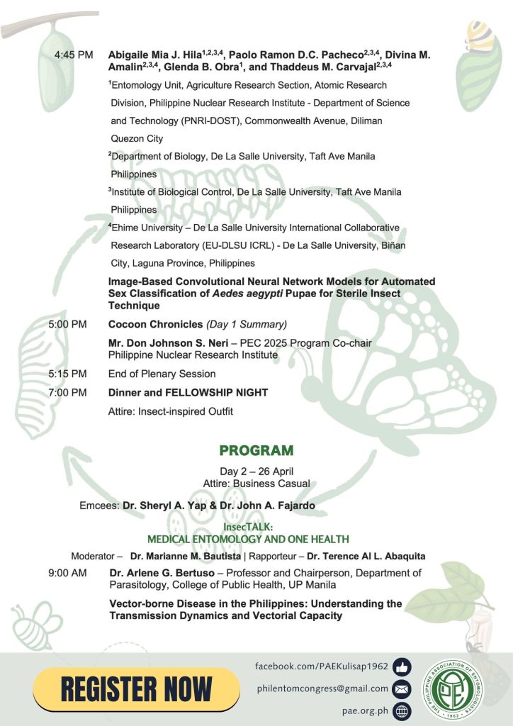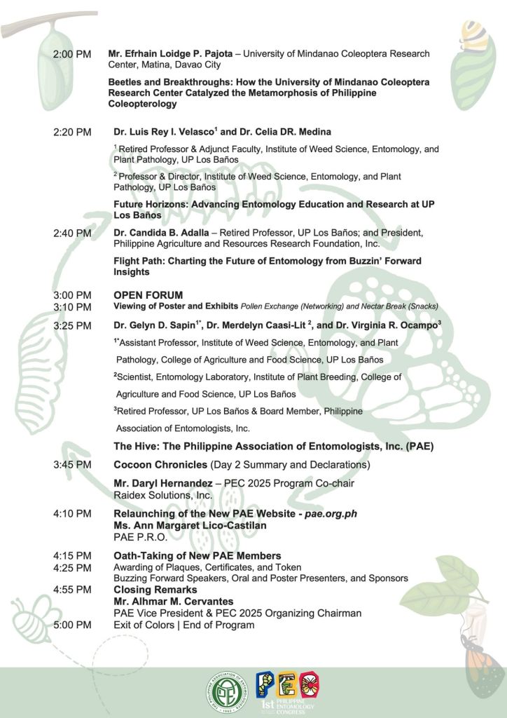 The Philippine Entomology Congress (PEC) is a historic event that marks the first national gathering of entomologists, experts, researchers, professionals, students, and enthusiasts with a shared passion and interest in insects.